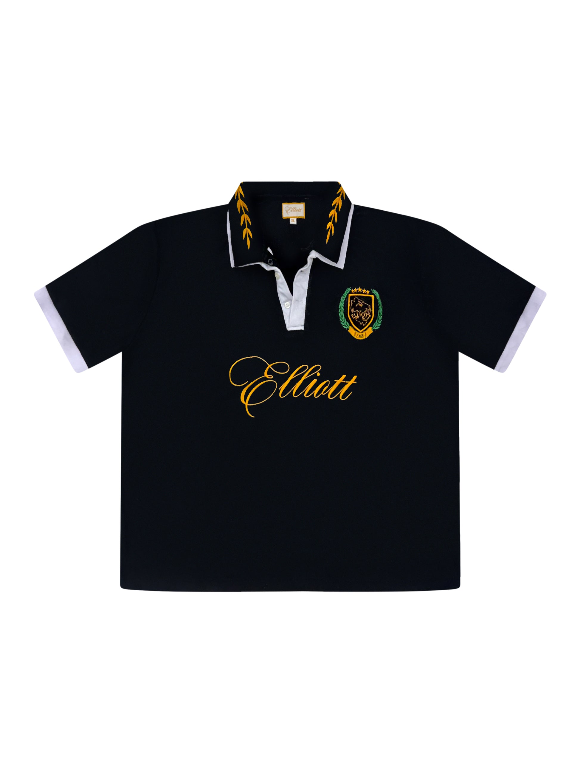 Step into refined sport style with the Country Club Polo. Designed with a double collar and laurel leaf embroidery, it brings a heritage feel with modern edge. The Elliott crest sits at the left chest, while the script logo anchors the front—clean, bold, and unmistakably Elliott.
